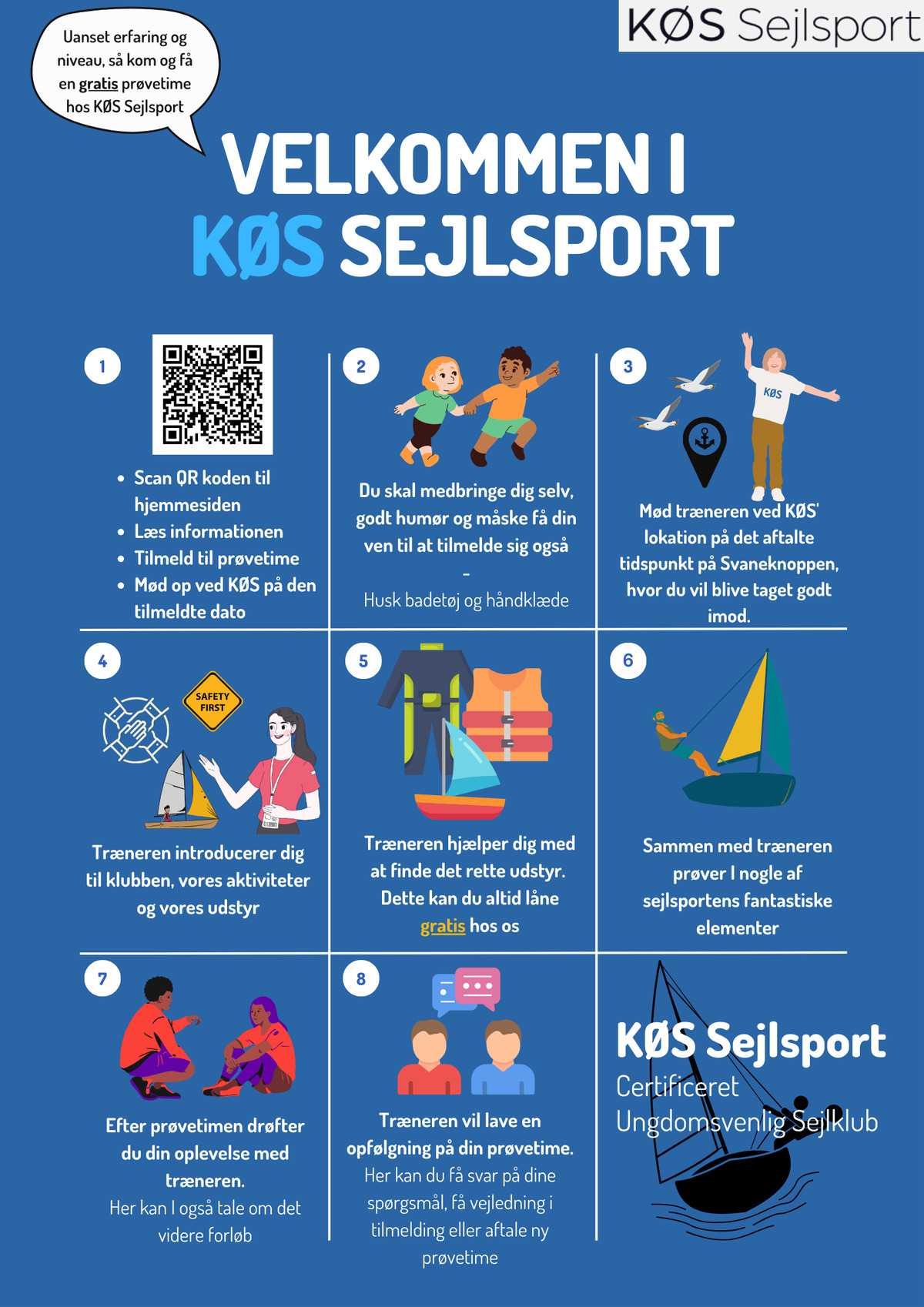 Prøvetimerne er til alle unge i alderen 6-16 år der overvejer om Sejlsport kunne være noget for dem.