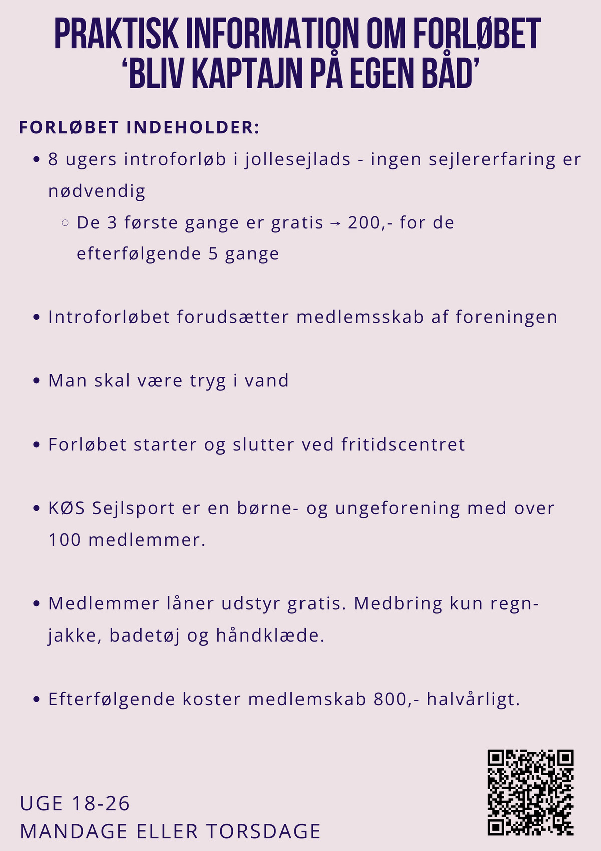 Som deltager i introforløbet bliver du medlem af KØS Sejlsport - og skal registrer dig nedenunder, så vi har fuldt overblik over hvem der deltager og styr på sikkerheden.